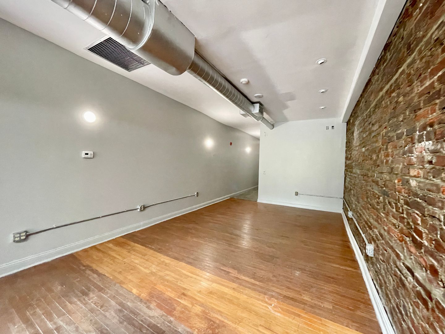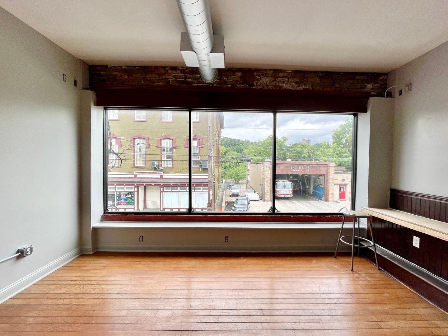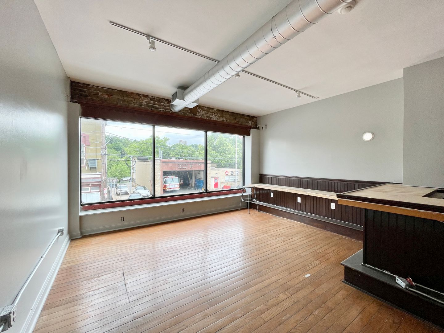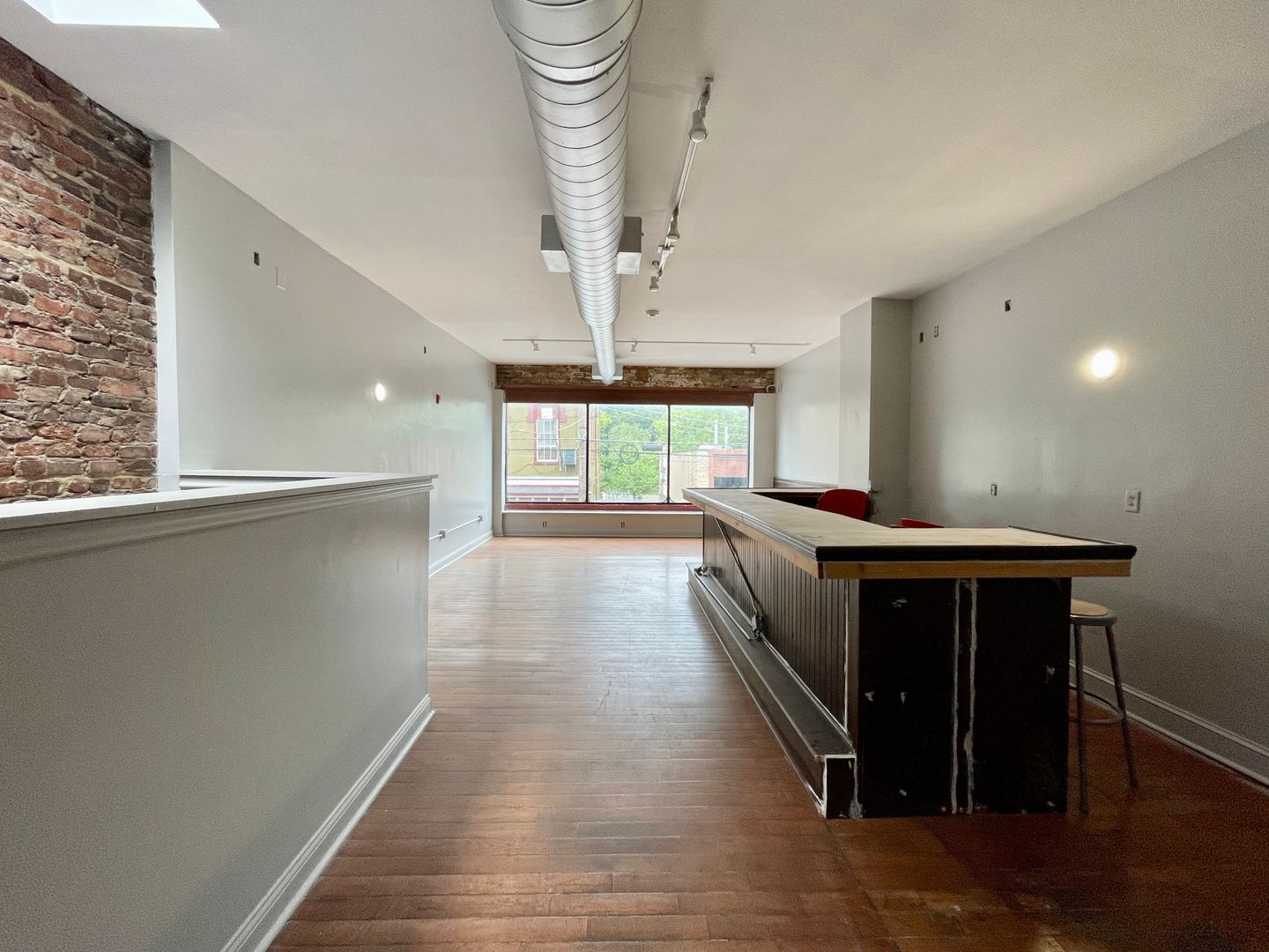 This space offers two floors of dining, plus a basement. The main floor has a large window that opens up to give the feel of a la fresco dining. This floor also has a large bar and seating area, a kitchen in the back, and two restrooms. The second floor offers an additional bar and expansive seating area, as well as more two restrooms and a small office.