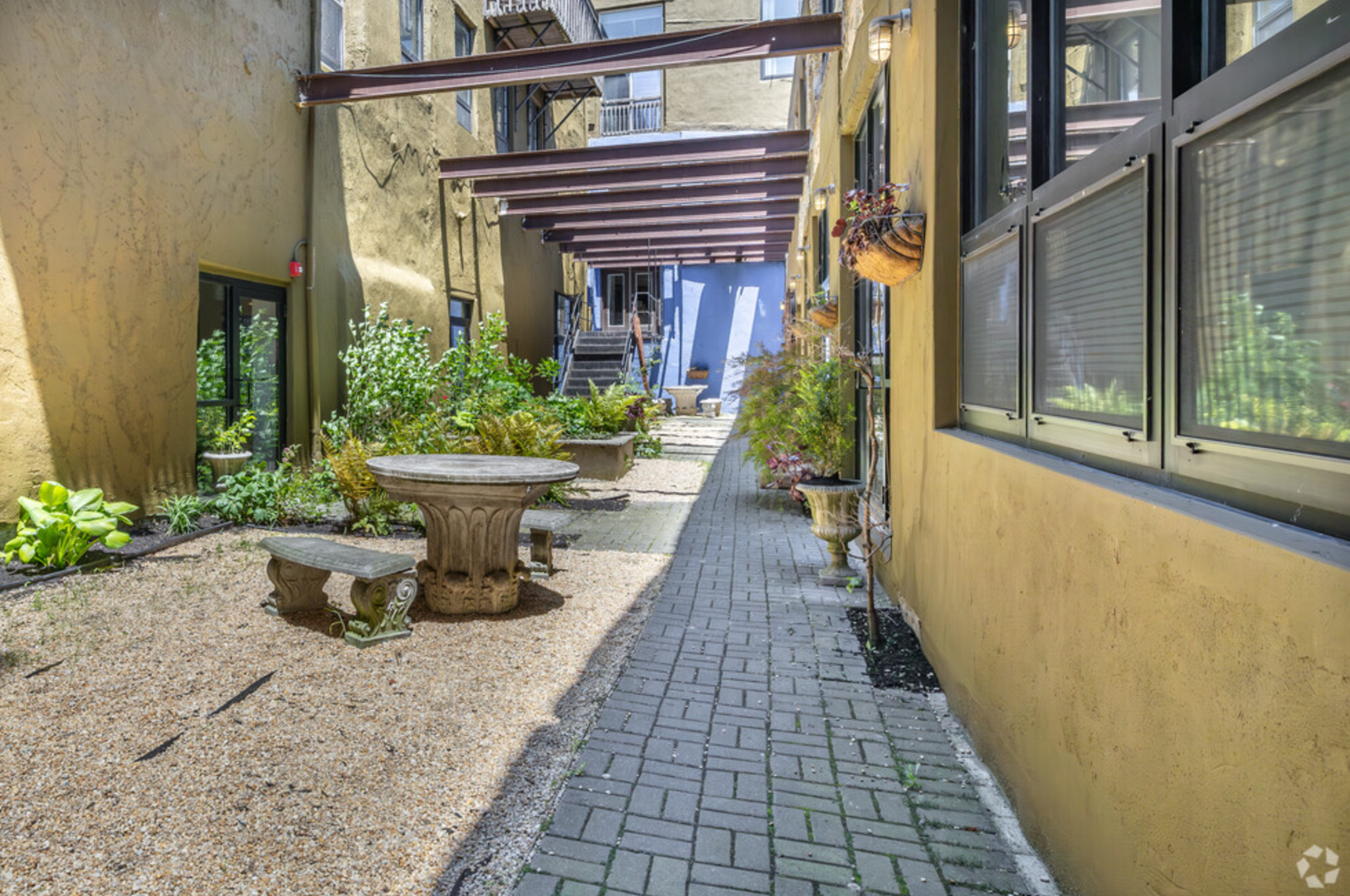 This former gym and yoga studio is located inside our community courtyard off of our main patio, with first floor access.